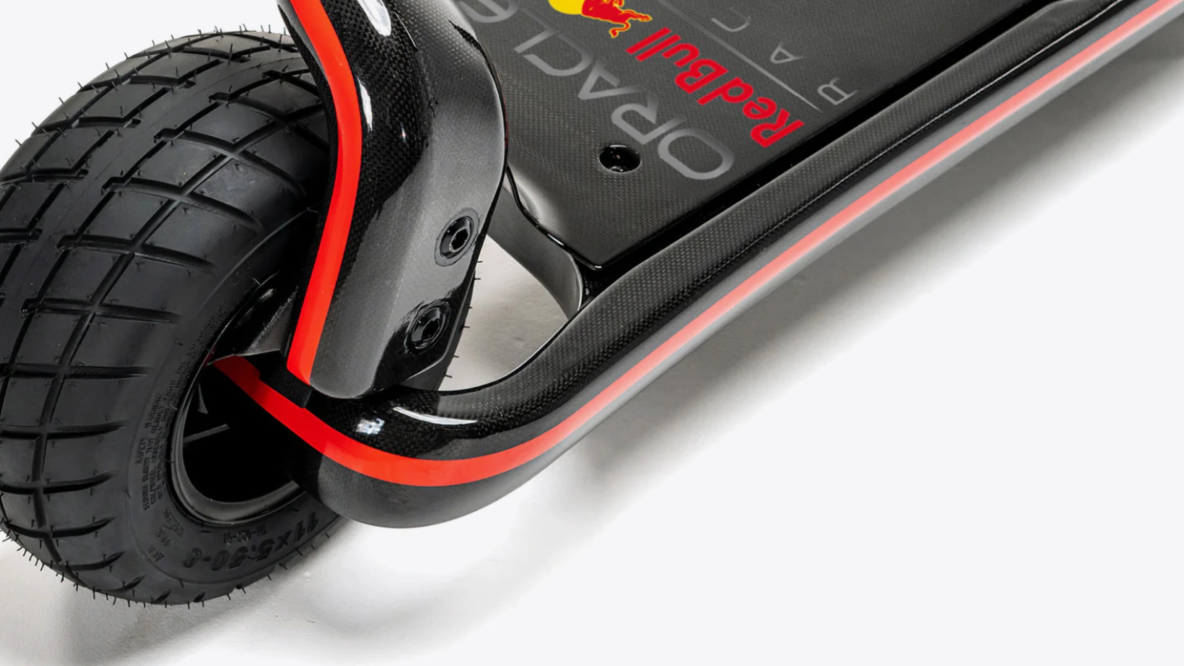 The Red Bull Racing RBS#01 Signed Carbon Edition electric scooter is a ground-up, pure, bespoke design done by the world's best F1 engineers when left to their own devices. Powered by a 750W motor and 760Wh battery, it's the only product developed by the same engineers who designed Oracle Red Bull Racing's World Championship-winning F1 car.